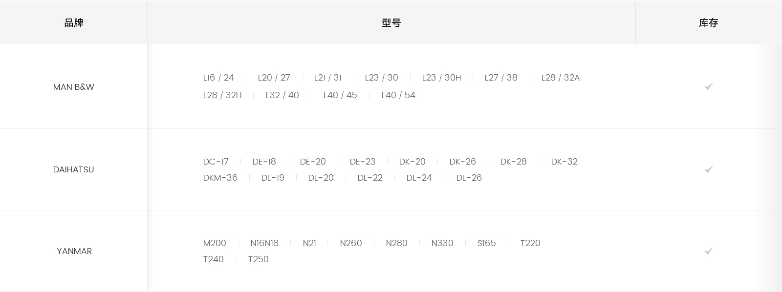 船舶辅机:我们能供应MAN,瓦锡兰 DAIHATSU,YANMAR,现代等多个品牌的四冲程柴油机,并且已获得陕西柴油机重工有限公司的官方授权代理。
