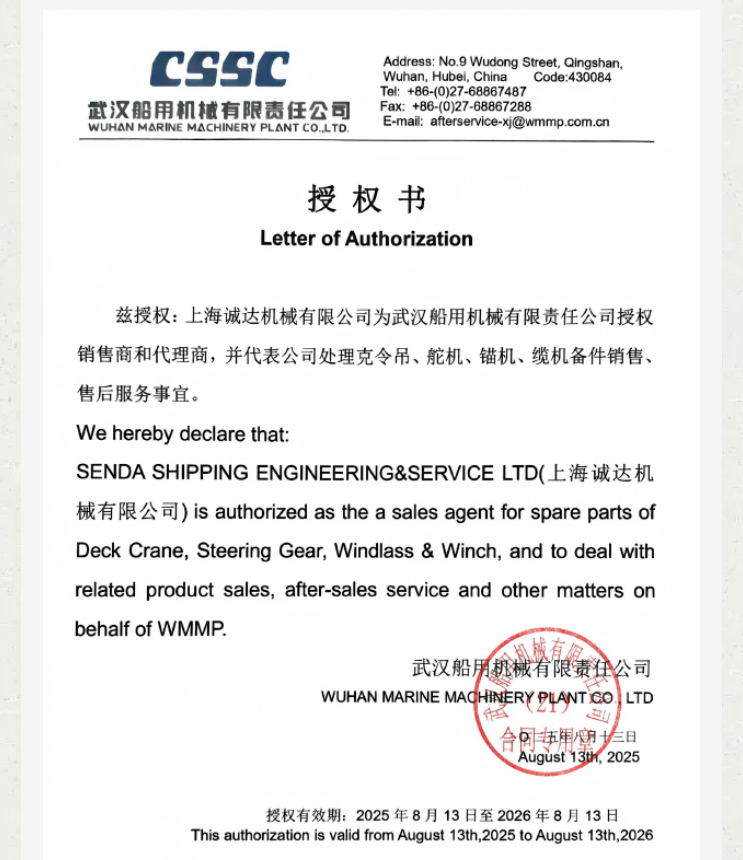 Breaking News: Senda Officially Becomes Authorized Sales and Service Provider for Wuhan Marine Machinery's Core Products!
